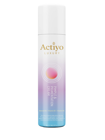 Actiyo Luxury Pimple & Pigmentation Cream with the power of ancient indian herbs, delivered through a modern lightweight formulation, and, enhanced with essential vitamins working together, to control acne and correct skin tone naturally.