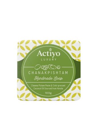 Enhance your youthful glow with Actiyo Luxury's Chanakpishtam Handmade Soap. Crafted with a purifying paste of Channa pistam (Cicer Arietinum seed powder) and cold-pressed coconut oil from Kerala, it nourishes and rejuvenates your skin.