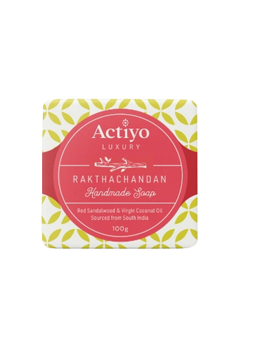 Experience the ultimate luxury with Actiyo Luxury's Rakthachandan Handmade Soap, enriched with Red Sandalwood powder from South India and Virgin Coconut Oil from Kerala. This soap brightens, nourishes, protects, and cleanses your skin, leaving it looking radiant and youthful.